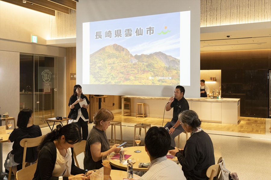 料理が運ばれるまでの間には、雲仙から訪れたゲストによるトークが展開されました。