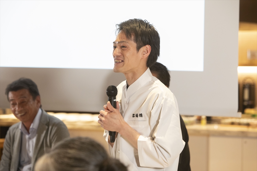 「私も茶畑の仕事はしていますが、野菜づくりはもっと大変なことの連続ですよね。生産現場のことを知るほどに、もっと大切に食べようと思えます。本日はシェフと生産者が話をしてくださって、贅沢な時間を過ごさせていただきました」岡村雅人さん(La Spiaggina)